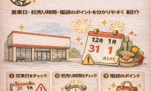 年末年始が近づいてくると、「しまむらはお正月も営業しているの?」「初売りは何時から始まるのかな」と、ふと気になってくる方も多いですよね。とくに初売りや福袋を目当てにしている場合、営業日や開店時間を把握していないと予定が立てづらく感じてしまう...