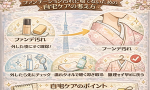 着物を脱いだあとふと襟元を確認して「こんなところに汚れが付いていた?」と驚いたことはありませんか。特に半衿や襟周辺は顔に近いため、着ている最中は気づきにくい一方でメイクの影響を受けやすい部分でもあります。ファンデーションには油分や色素が含ま...
