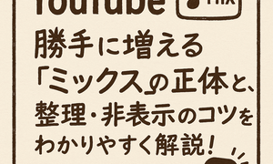 YouTubeを開いたとき、心当たりのないミックスがずらりと並んでいて「いつ作ったんだろう?」と驚いたことはありませんか。特に音楽系の動画をよく再生する人ほど、似たテーマのミックスが次々と生成されてしまい、扱いにくさを感じやすい傾向がありま...